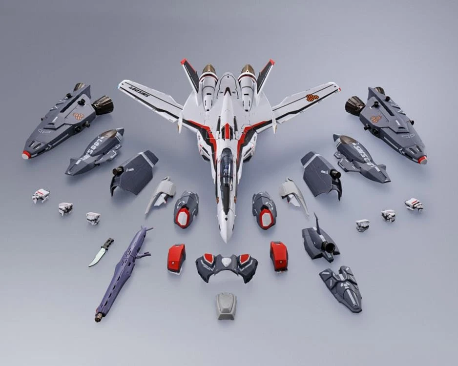 From Macross Frontier, the VF-25F Messiah Valkyrie driven by the main character, Alto Saotome, has been revived as a set with super parts. With a variety of accessories, including a pilot figure for the cockpit as well as an Alto Saotome figure, the DX Chogokin VF-25F Messiah Valkyrie Revival Ver. is sure to please any fan.