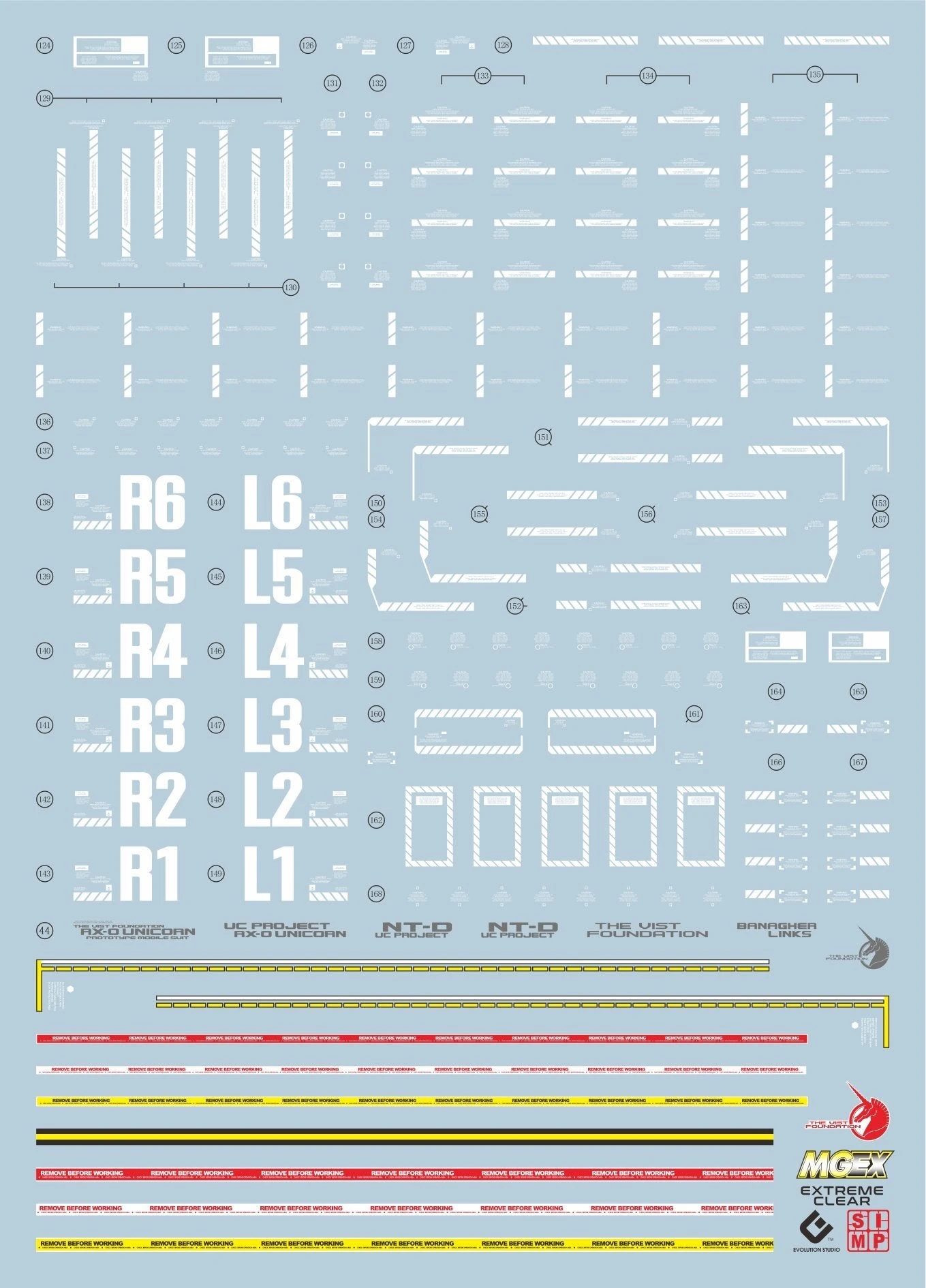 High quality high definition water decal designed for Bandai MGEX Unicorn Gundam (Extreme Clear)