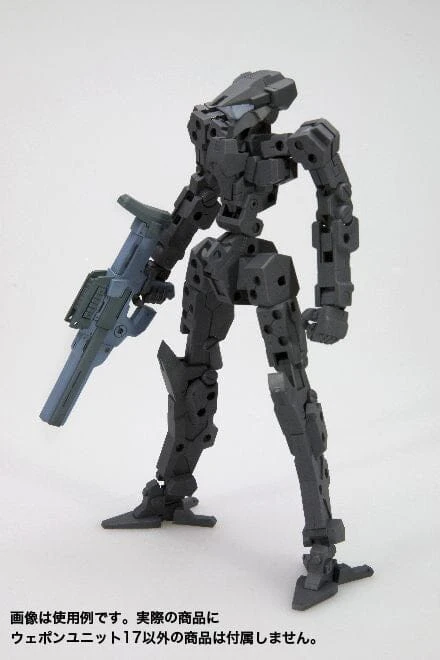 M.S.G WEAPON UNIT 17 FREESTYLE GUN is an item in which users can create various forms of guns such as a “machine pistol,” “assault rifle,” and “sniper rifle” by rearranging the parts. The guns can additionally be combined with the multiple included magazines, so users can create their preferred silhouette for their weapon. Also, a 3mm hard point is set on the weapon’s main unit. Combine this item with various model kit parts including those of the M.S.G and Frame Arms series, to easily create an original weapon.