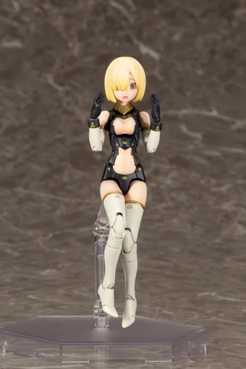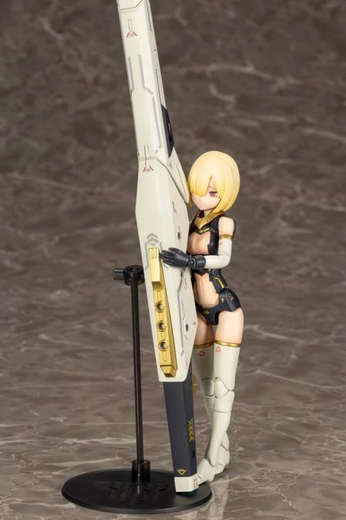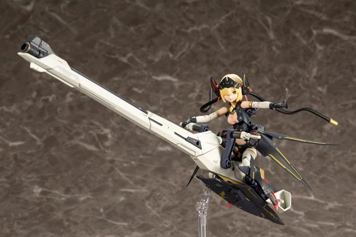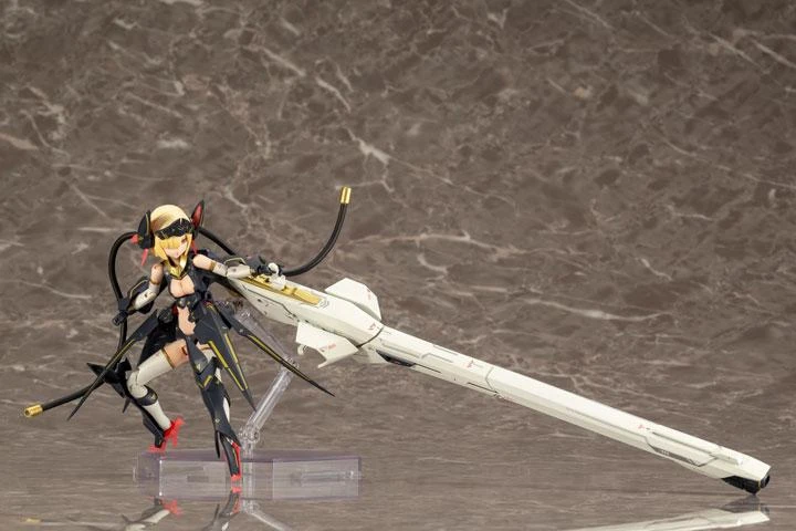Megami Device Bullet Knights Launcher Model Kit features an oversized launcher and shield can be attached to the arms that extend from her back. Reconfigure the weapon into “Ride Mode” and use it as a vehicle for the Megami.