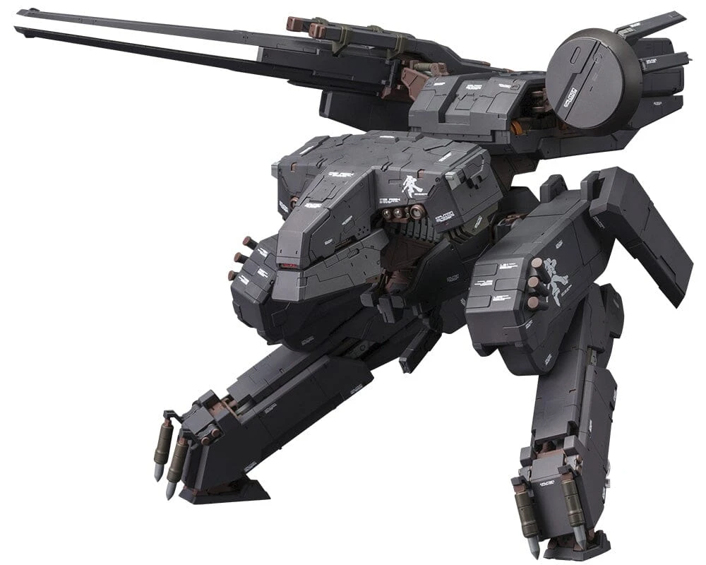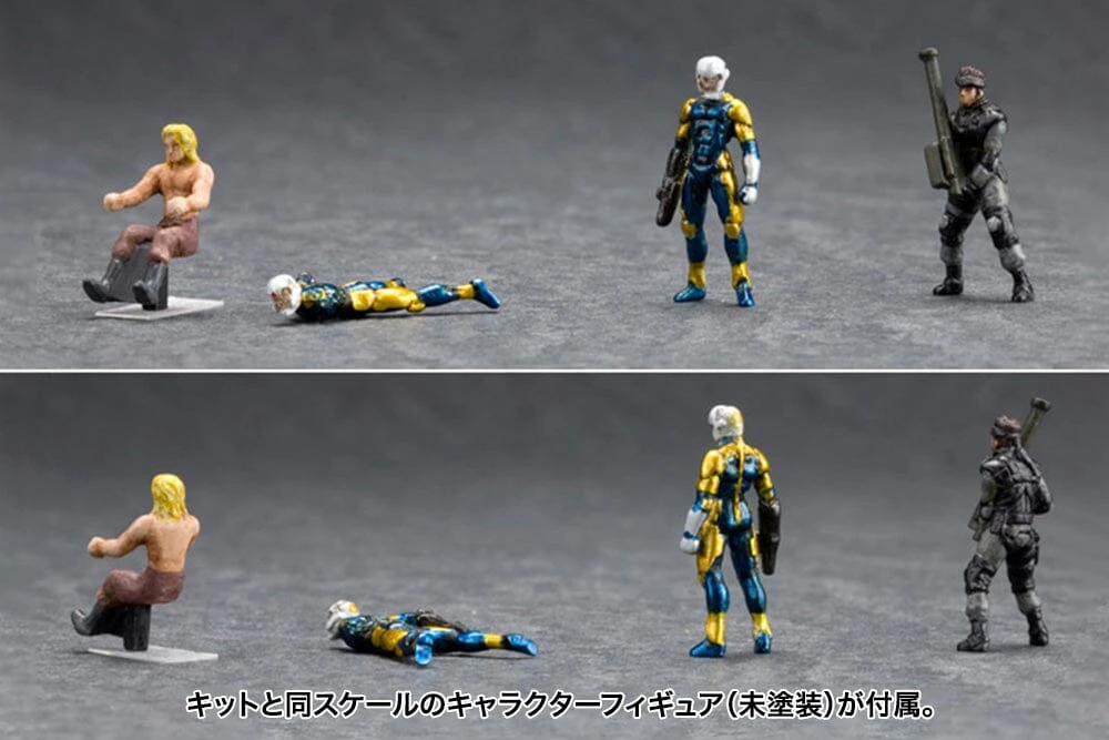 The sculpt remains as is, with the color scheme changed to black to allow for easy painting as an original feature for this model. New decals, such as caution marks that add detail to the model and marking decals that allow for the original REX to be recreated, are included. A total of four figures are included: Solid Snake, a Cyborg Ninja figure in the standard standing pose, a damaged version of Cyborg Ninja to recreate the famous scene where he is crushed by REX’s feet, and Liquid Snake. A special base designed after the hangar from the series is also included.